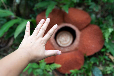 Rafflesia Keithii flower and hand - The rafflesia is the world's largest bloom