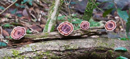 Microporus is a fungi that growth on tree, wood or fallen branch. This relationship called Saprophytism that can find in rainforest.