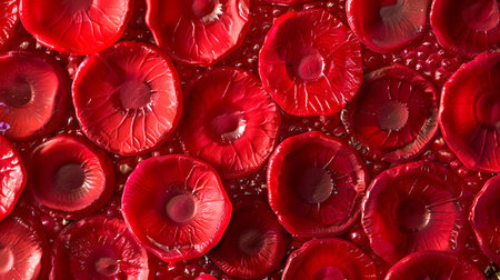 Texture of red blood cells. Close-up of erythrocytes. in a blood sample. Concept of medical research, hematology studies, and cellular detail. Background. Banner. Copy space
