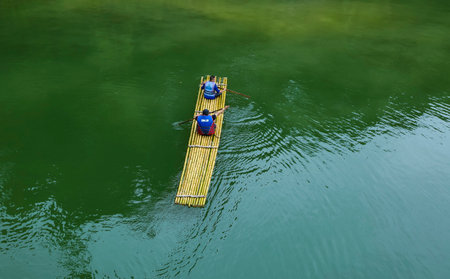 bamboo rafts in the river and nature travel,boatman