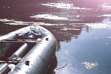 summer and active sport. rafting boat on the river bank