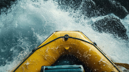 A vibrant yellow inflatable boat navigates through powerful waves, capturing the essence of adventure and outdoor excitement in the open water.