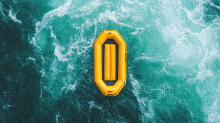 Bright Yellow Inflatable Raft on Ocean Waves in Vibrant Turquoise Waters, Aerial View of Adventure and Exploration at Sea for Outdoor Enthusiasts