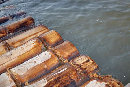 Close up of some part bamboo raft on the lake. Color tone in emotion feeling negative.