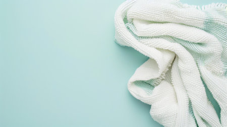 Light green fabric on green background with copy space. Light green fabric texture. Crumple light green fabric