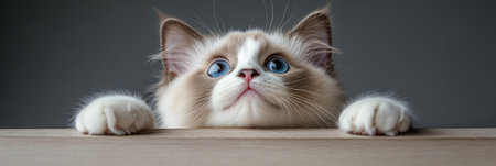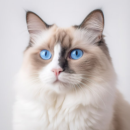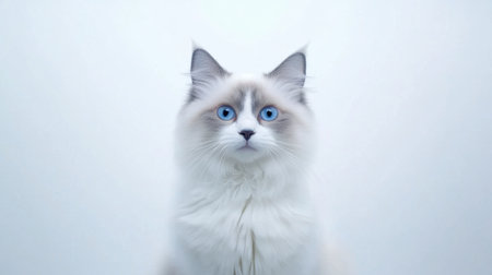 Charming Ragdoll Cat Posing Elegantly with Striking Light Blue Eyes in a Bright, Clear Atmosphere