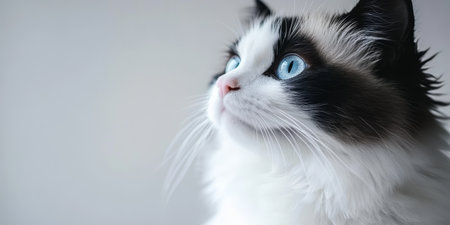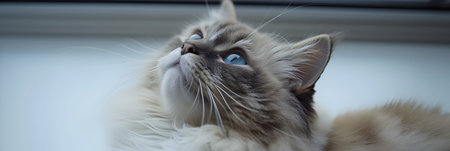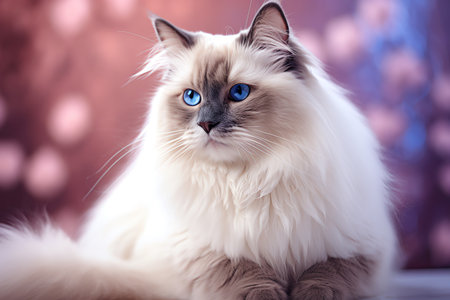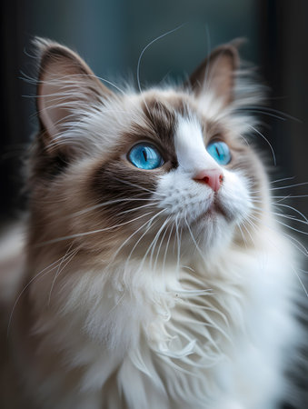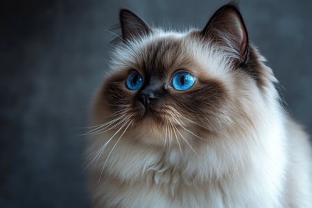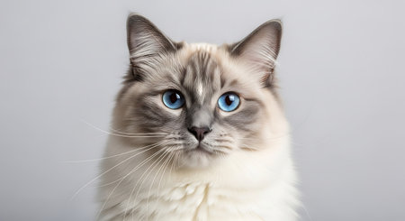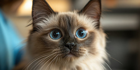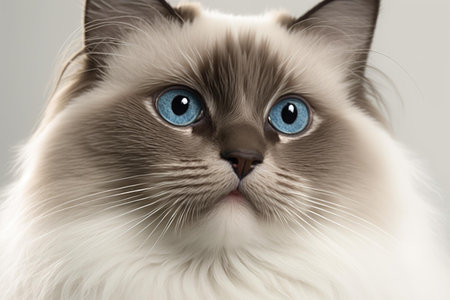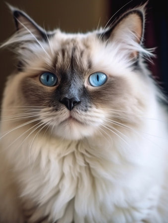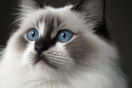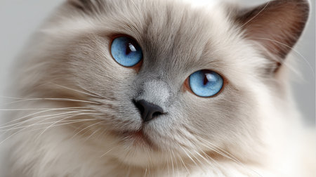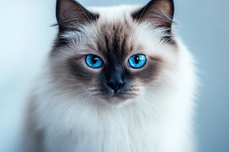 Closeup portrait of a beautiful ragdoll cat with striking blue eyes