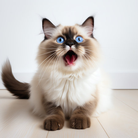 Elegant Himalayan Cat with Striking Blue Eyes Playfully Posing in a Beautiful Indoor Setting