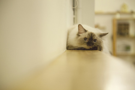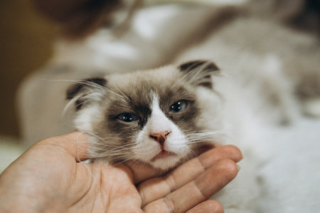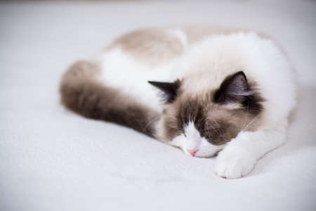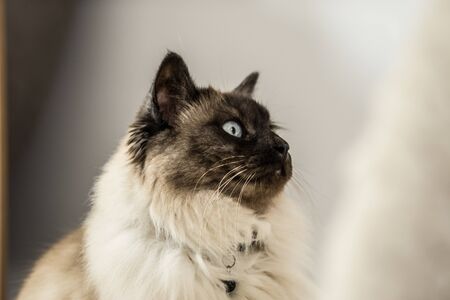 Young healthy beautiful purebred Ragdoll cat, at home