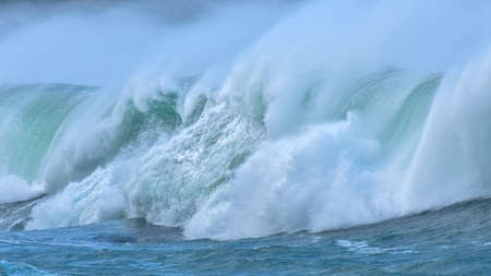 Powerful ocean wave breaking. Wave on the surface of the sea. Wave breaks on a shallow bank. beautiful natural background