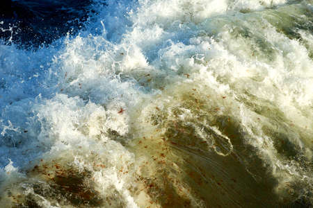The natural background of the emerald green water spreading into waves and white bubbles as the boat sails in the morning. Feeling fresh, relaxed, and cool.
