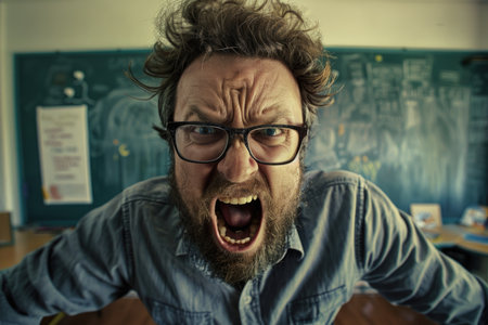 disgruntled angry man with a beard gritted his teeth and clenched his fists. angry at everyone
