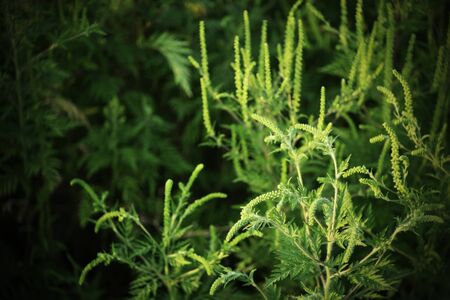 Ragweed flowering plants in the genus Ambrosia, it's pollen is a common allergen. Selective focus.