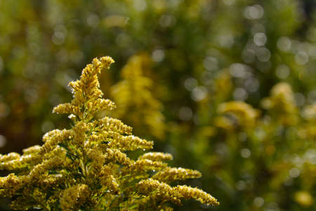 Solidago canadensis blooms wildly in nature in late summer.