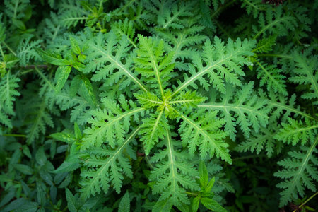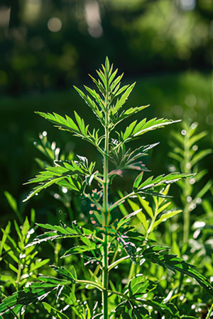 Green ambrosia plant close up with leaves.