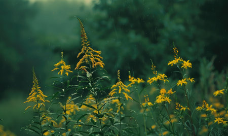 Goldenrod under the rain closeup