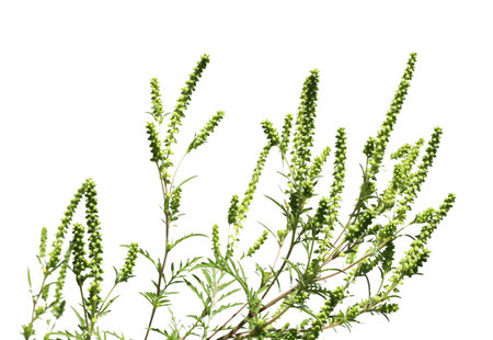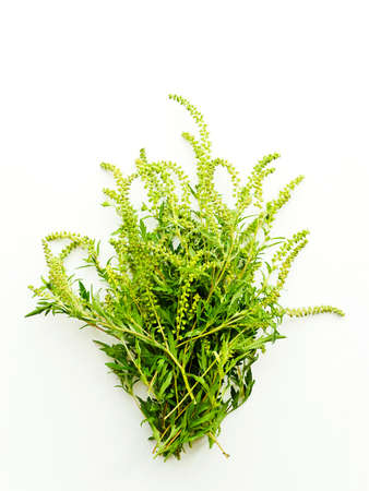 Blooming ragweed plant (Ambrosia genus) on white background. seasonal allergy