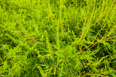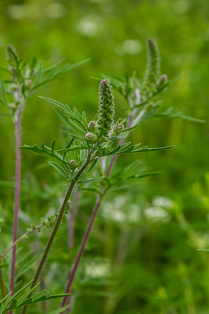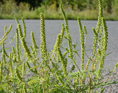 In summer, ragweed (Ambrosia artemisiifolia) grows in the wild
