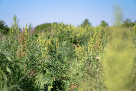 Ragweed, allergy causing grass. Ragweed bushes. Ambrosia artemisiifolia causing. Selective soft focus