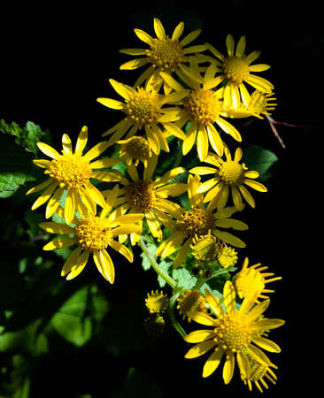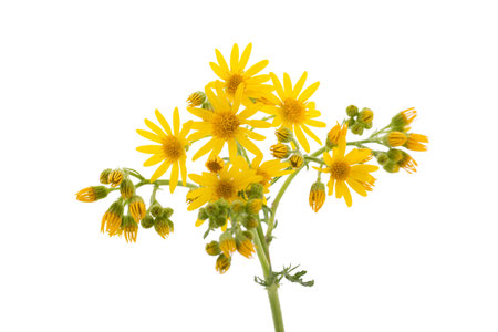 Close up of flowers on a common ragwort (jacobaea vulgaris) plant