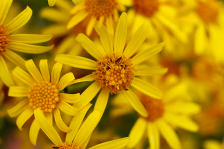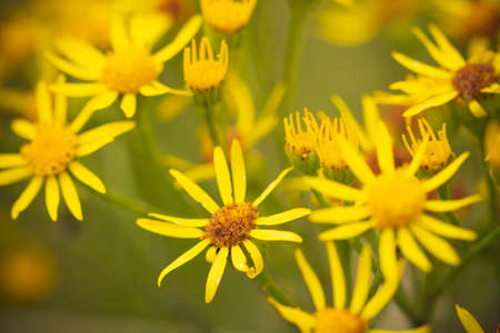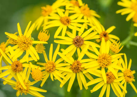Jacobaea vulgaris, ragwort, common ragwort, benweed yellow flowers closeup