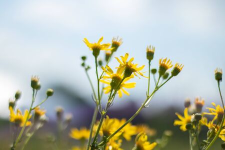 Beautiful delicate wildflowers in vintage style. A bush of yellow daisies.