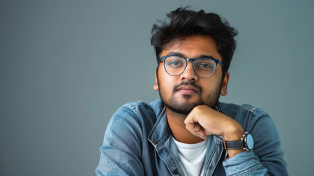 Indian Male Software Developer in Casual Clothing and Glasses Looking at Camera