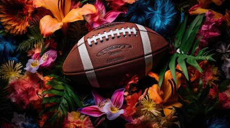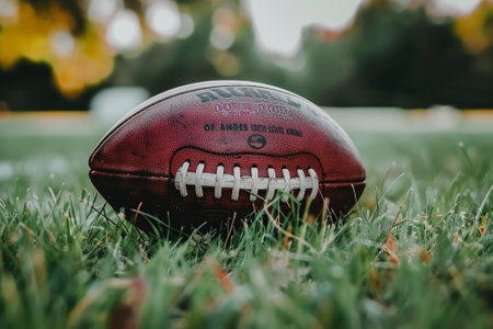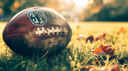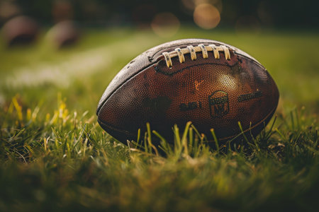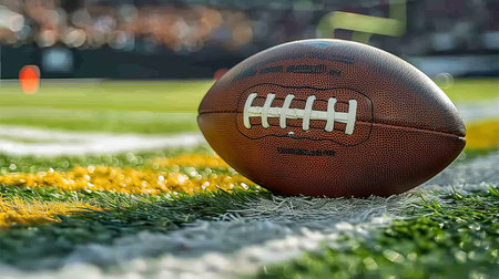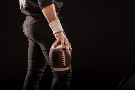 American football ball with natural lighting on dark background. Horizontal sport theme poster, greeting cards, headers, website and app