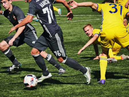 MOSCOW, RUSSIA - AUGUST 24, 2019: Soccer players in game. Amateur league in Moscow.