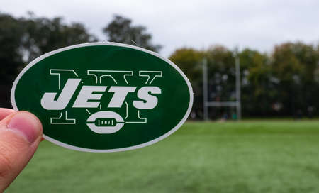September 16, 2021, New York, USA. Emblem A Professional American Football Team New York Jets based in The New York Metropolitan Area in the sports stadium.