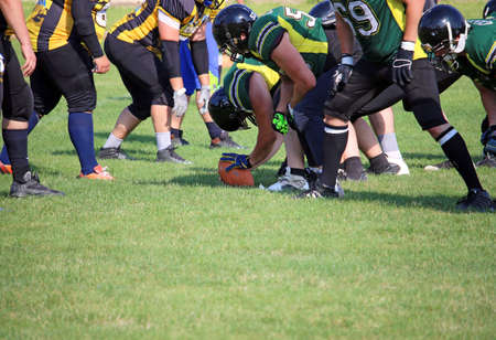RUSSIA, TROITSK CITY - JULY 11: Unidentified players of Spartans team just before Russian american football Championship game Spartans vs Raiders 52 on July 11, 2015, in Moscow region, Troitsk city, Russia