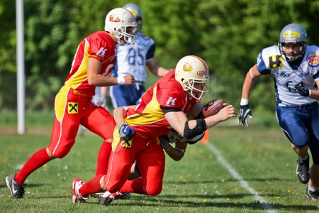 VIENNA, AUSTRIA - MAY 9 Vienna Vikings beat Graz Giants in an AFL-season game 27-24 on May 9, 2010. Shown is RB Kenneth Chinaemelu (Vikings #35).