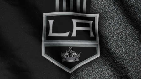 Los Angeles Kings hockey club flag waving in the Wind. Los Angeles Kings HC. 3d render.