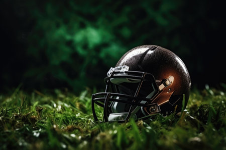 Portrait of a young american football player in helmet. Shallow depth of field.