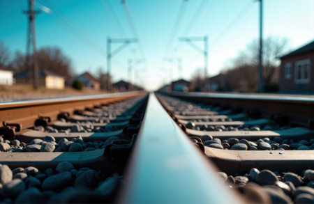 Close-up of train tracks, symbolizing journey and exploration. AI generative.