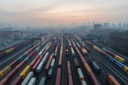 Railway Depot: Trains Laden with Containers Await Departure on Multiple Tracks