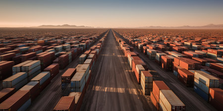 Rows of cargo containers stretch to the horizon, creating an awe-inspiring sight of endless stacks that signify global trade, logistics, and the interconnectedness of our modern world. AI Generative AI