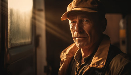Portrait of Truck Driver in Front Truck extreme closeup. Generative AI