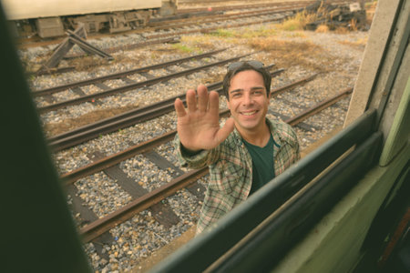 Handsome Persian tourist man at the railway station in Bangkok, Thailand