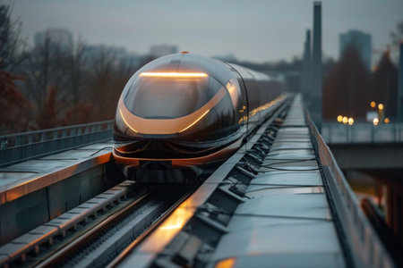 A magnetic levitation train gliding smoothly above the tracks with minimal friction AI generated