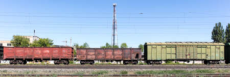 Freight cars of the train. Railway of Moldova. Background with copy space for text or lettering. Illustrative editorial. September 15, 2021, Balti Moldova.