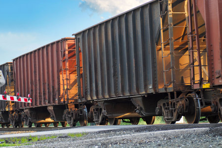 Freight transport cars on the railroad in the movement