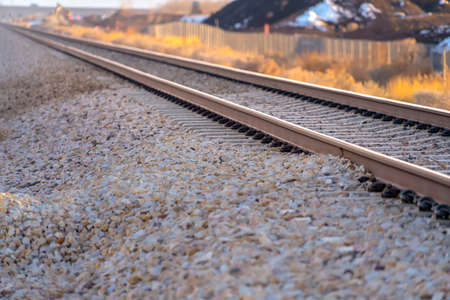 Close view of a railway track at winter