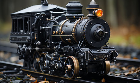 smoke puffing out of the train locomotive, created with generative ai