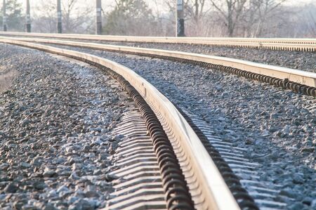 Railway station on a sunny evening, rails going into the distance. Travel and business concept