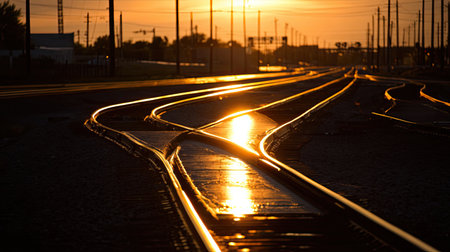 view of the railway close up at sunset