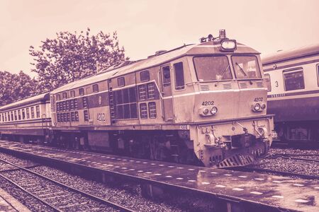 Low angle photo Front of old train led with Diesel Electric locomotives on the tracks of Thailand.