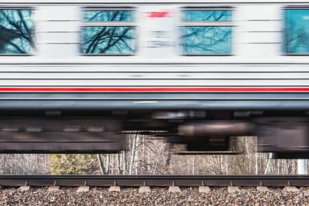 Train in motion. Fast, dynamic, travel. Speed, transportation, railway, movement, close up.