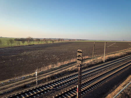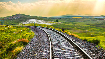 Landscape of an old abandoned railway in fall. Warm light, sustainable traveling
