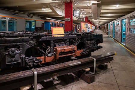 Brooklyn NY - USA - Jul 9 2019: Vintage subway train car in New York Transit Museum located in downtown Brooklyn